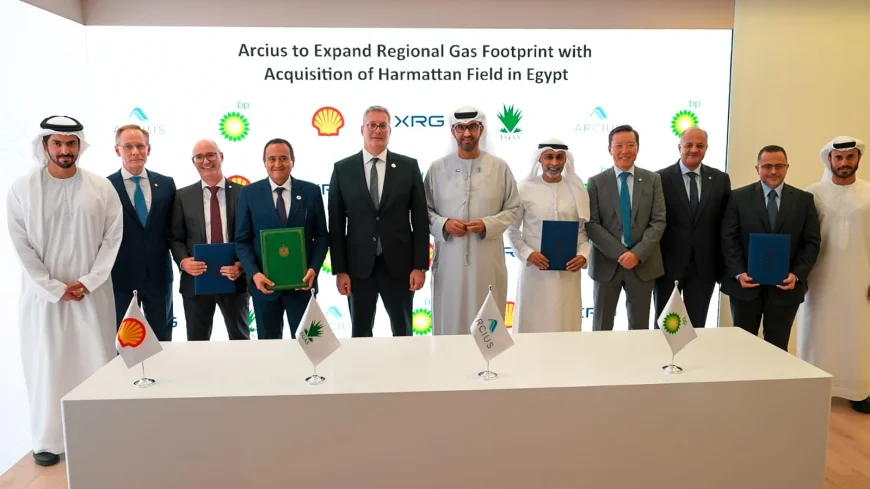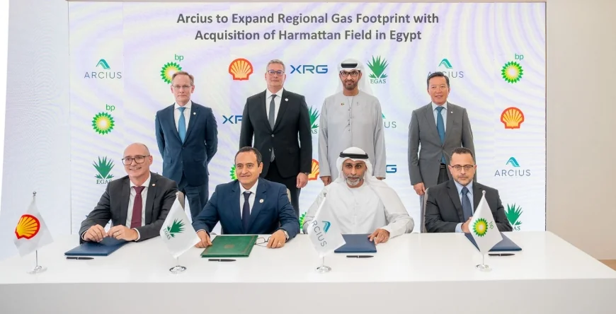 وتتضمن الاتفاقية استحواذ شركة أركيوس على كامل حقوق والتزامات شركتي شل وبي بي في الاتفاقية، والتي تشمل عقد تنمية حقل هارماتان، بما يعكس ثقة الشركة في مناخ الاستثمار بقطاع البترول المصري .