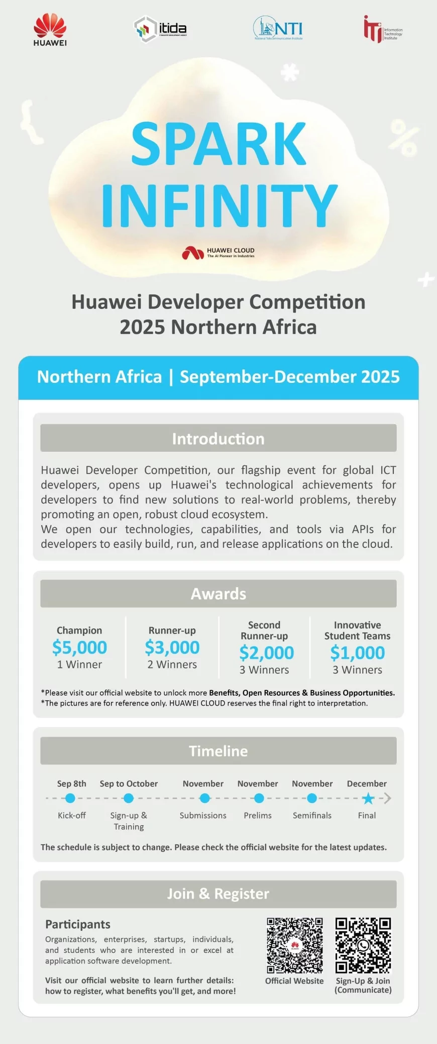 "إبداع بلا حدود": انطلاق مسابقة هواوي كلاود للمطورين 2025 بالتعاون مع إيتيدا ومعاهد الاتصالات