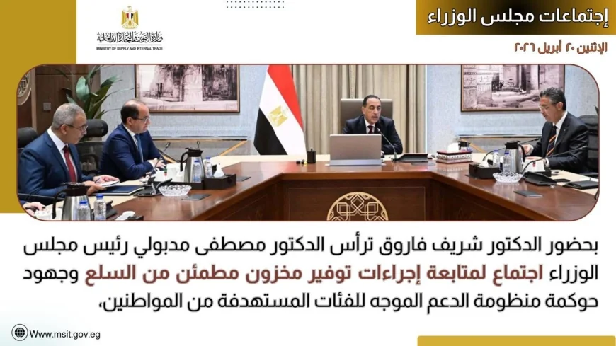 شارك وزير التموين في اجتماع برئاسة رئيس مجلس الوزراء لمتابعة توفير مخزون آمن من السلع، حيث أكد الدكتور شريف فاروق توافر احتياطيات استراتيجية كافية من السلع الأساسية، مع استمرار الرقابة على الأسواق لضمان استقرار الأسعار.