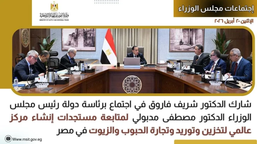 ناقشت الوزارة خلال اجتماعات حكومية مشروع إنشاء مركز عالمي لتخزين وتوريد وتجارة الحبوب والزيوت في مصر، حيث كُلفت الجهات المعنية بسرعة الانتهاء من دراسات الجدوى، بما يشمل التكلفة والعائد والقيمة المضافة للمشروع.