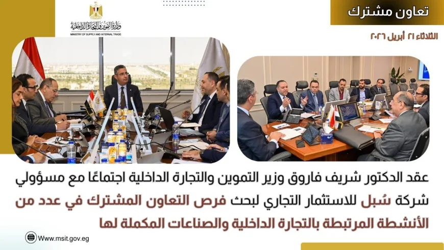عقد وزير التموين اجتماعًا مع شركة “سُبل للاستثمار التجاري” لبحث فرص التعاون في التجارة الداخلية والصناعات المكملة، مع استعراض تجربة الشراكة مع شركة النيل للزيوت والمنظفات كنموذج لتعظيم كفاءة الأصول الحكومية.