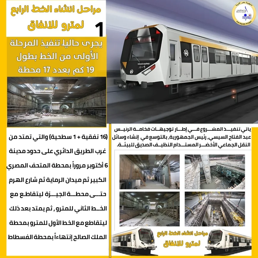 ويمثل الخط الرابع لمترو الأنفاق محورًا رئيسيًا في تطوير شبكة النقل الجماعي داخل مصر.