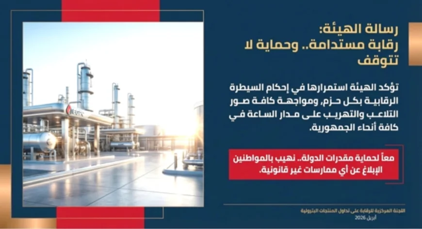 وأكدت الهيئة استمرارها في إحكام السيطرة الرقابية على منظومة تداول المنتجات البترولية ومواجهة كافة صور التلاعب والتهريب بحزم، بما يحفظ مقدرات الدولة ويضمن حقوق المستهلك.