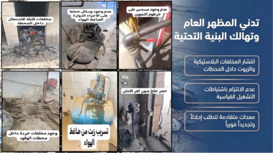 ملاحظات سلامة داخل المحطات.. وصهاريج قرب خطوط كهرباء ومعدات متهالكة