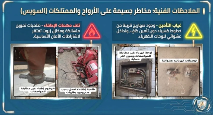 وفي السويس، رصدت اللجنة عددًا من أوجه القصور، أبرزها عدم الالتزام باشتراطات تأمين بعض المحطات، ووجود صهاريج قريبة من خطوط كهرباء دون تأمين مناسب، فضلًا عن طلمبات تموين ومعدات متهالكة تحتاج إلى صيانة عاجلة، إلى جانب مخازن زيوت غير مؤمنة وفق الاشتراطات الفنية.