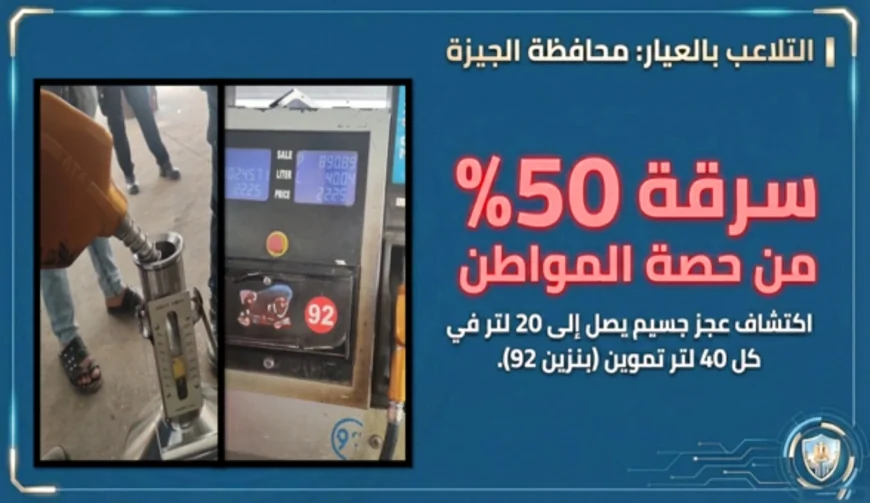 أما في محافظة الجيزة، فقد تم ضبط تلاعب بنحو 8 آلاف لتر داخل محطتين للوقود، إضافة إلى اكتشاف تلاعب في عيارات مسدسات تموين بنزين 92 المخصصة للجمهور.