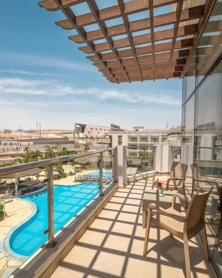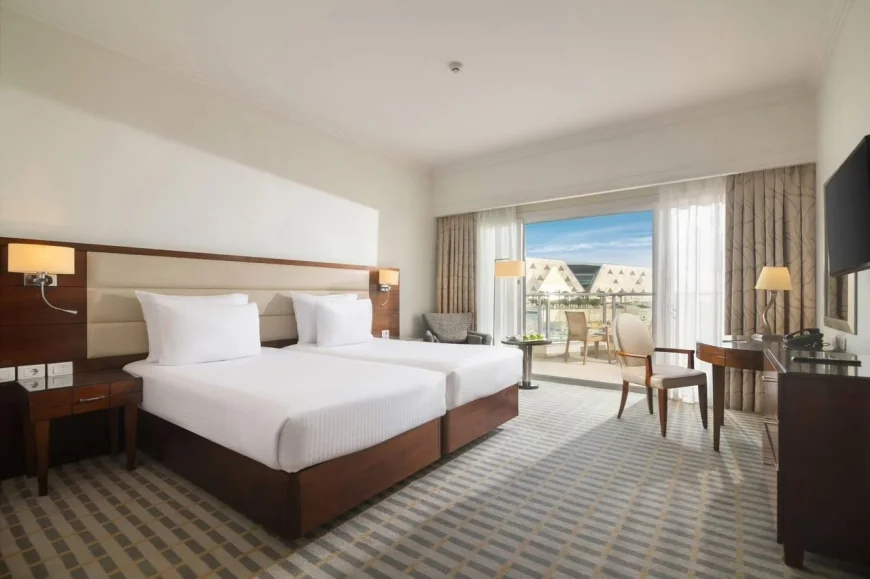 ويضم الفندق، المصنف 5 نجوم، عدد كبير من الغرف والأجنحة الفندقية، ومجموعة من المطاعم والكافيهات، وحمامات سباحة، وقاعات مخصصة للاجتماعات والفعاليات، بما يجعله وجهة مثالية للإقامة والترفيه وتنظيم المناسبات.