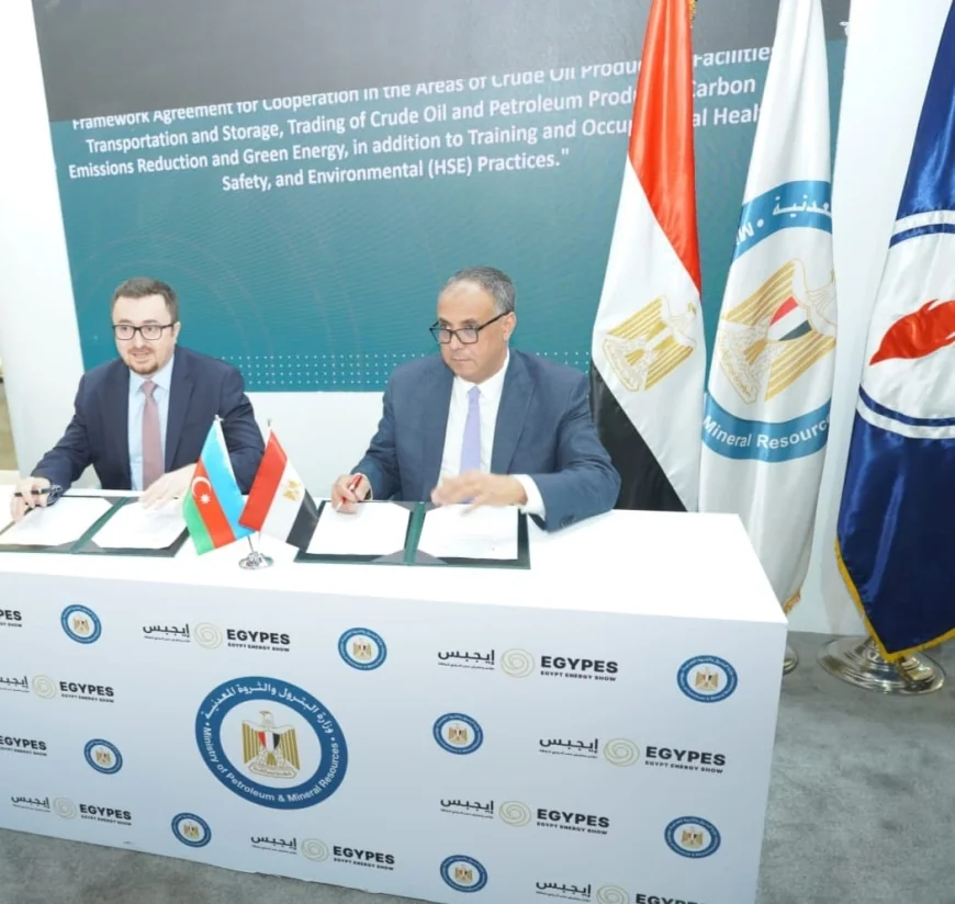 وقعت الهيئة المصرية العامة للبترول اتفاقًا إطاريًا مع شركة النفط الأذربيجانية "سوكار" للتعاون في تطوير عمليات إنتاج الزيت الخام وتعزيز كفاءة التشغيل، وذلك بحضور السفير الأذربيجاني بالقاهرة. ووقع الاتفاق المهندس صلاح عبد الكريم الرئيس التنفيذي للهيئة مع ناتيج مصطفاييف الرئيس التنفيذي لسوكار. ويشمل الاتفاق تحسين منظومة نقل وتخزين الزيت الخام والمنتجات البترولية، ودعم نشاط تداولها وبناء مركز إقليمي لتجارة وتخزين الطاقة، إلى جانب خفض الانبعاثات الكربونية ودعم التحول للطاقة الخضراء، وتطوير برامج تدريب الكوادر في مجالات الصحة والسلامة والبيئة.