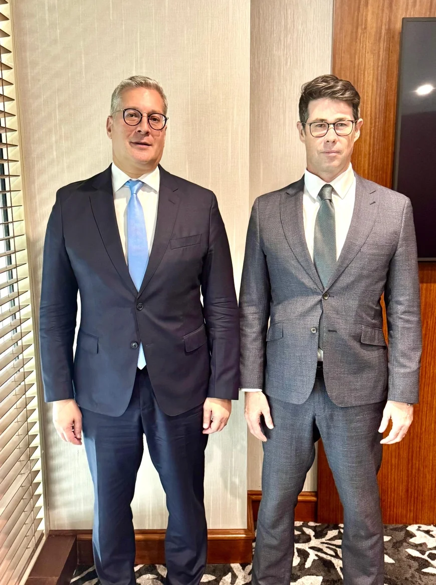 التقي المهندس كريم بدوي وزير البترول والثروة المعدنية خلال زيارته لمدينة بيرث بأستراليا ، السيد إيان كورتلانج، المؤسس والرئيس التنفيذي لشركة هانتر الأسترالية ذات الخبرات الواسعة في قطاع التعدين في القارة الإفريقية .
