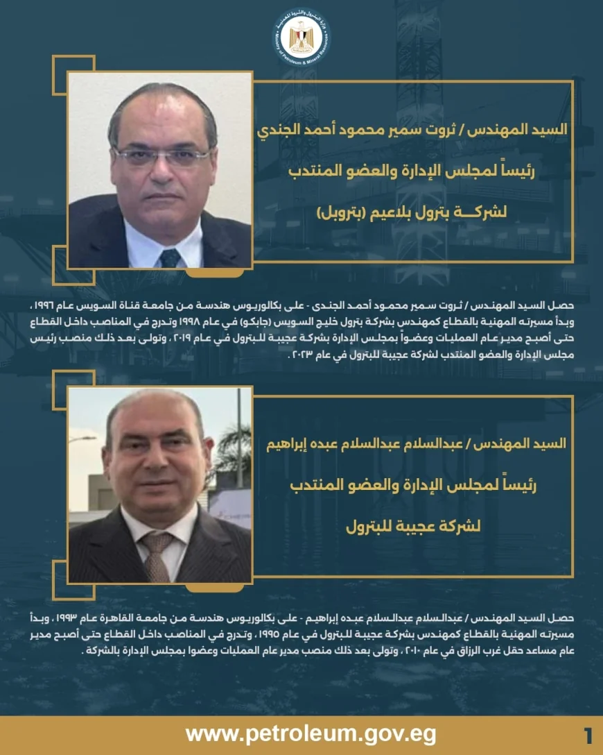 وزير البترول يصدر قرارات بتعين روؤساء جدد لشركتي عجيبة وبتروبل