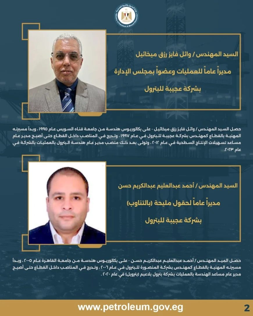 تأتي هذه القرارات في إطار استمرار وزارة البترول والثروة المعدنية في تنفيذ استراتيجية التطوير والتحديث، ودعم المواقع الإنتاجية بالكفاءات القادرة على مواصلة مسيرة النجاح وتحقيق معدلات أداء متميزة تواكب متطلبات المرحلة المقبلة