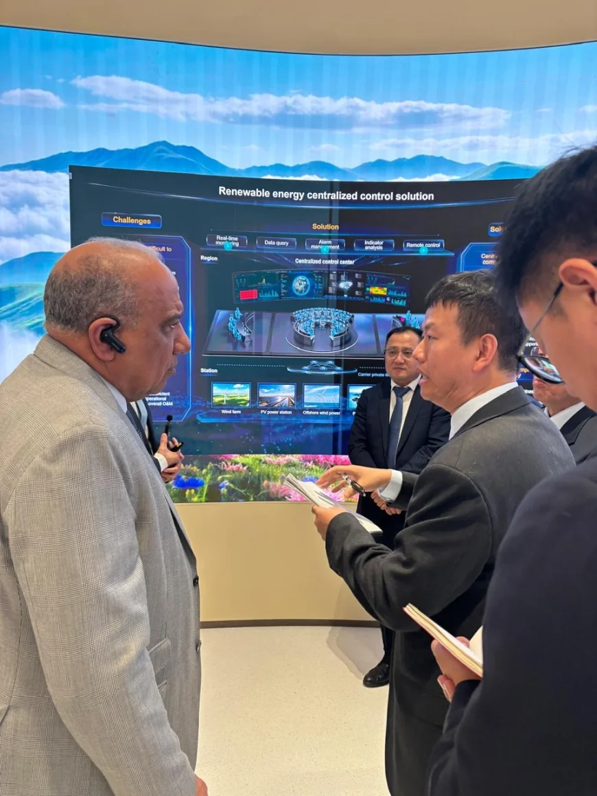 وخلال الزيارة، قدم فريق عمل هواوي شرحًا تفصيليًا حول مجالات عمل الشركة المختلفة، حيث تم استعراض أحدث المنتجات والتكنولوجيات التي تمتلكها في مجالات تحكمات المحطات الشمسية، ومراكز البيانات، وأنظمة التواصل بين مكونات المنظومة الكهربائية.