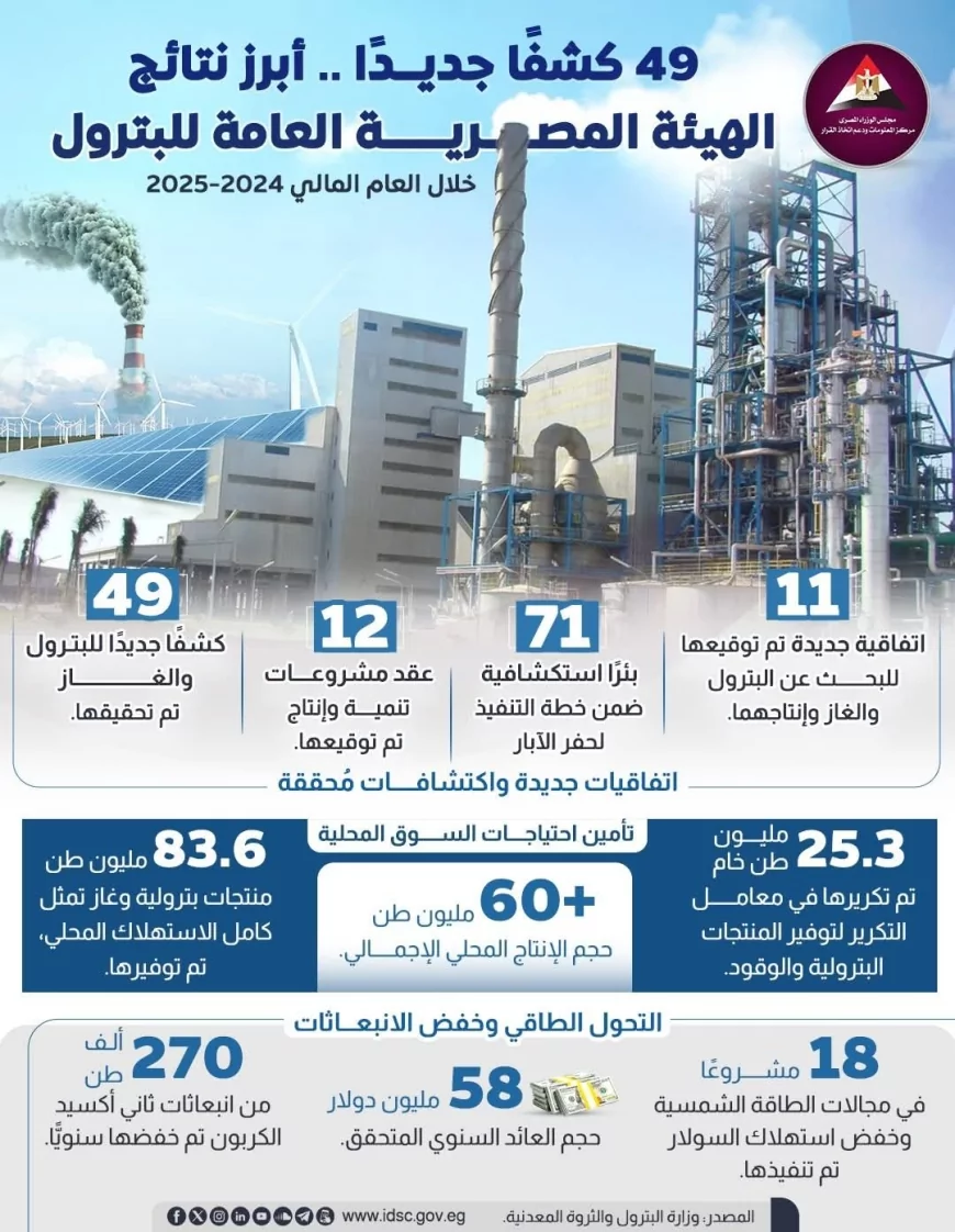 49 كشفًا وتوقيع 11 اتفاقية جديدة للبحث عن البترول الغاز